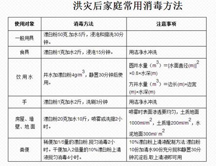 1、做好家庭消毒。對被洪水淹過的房屋內(nei) 外,要開展消毒殺菌工作。一般用“84”消毒液按1:60比例配水後用噴霧器對應消毒的場所進行噴灑。對餐飲具進行消毒 ,用開水煮沸10~30分鍾。衣服、被單,需暴曬後進行清洗。經過水淹的井,必須清淘、衝(chong) 洗與(yu) 消毒。
