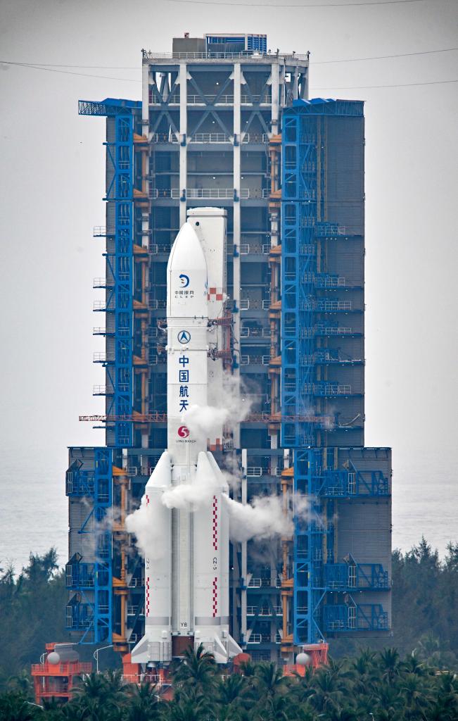5月3日拍攝的嫦娥六號探測器和長征五號遙八運載火箭器箭組合體(ti) (來源:新華社)