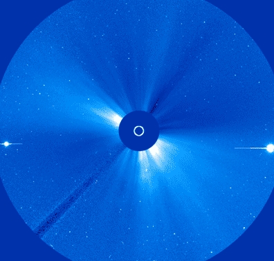 SOHO衛星攜帶的日冕儀(yi) 拍攝到日冕物質拋射過程 來源:中國氣象局國家空間天氣監測預警中心