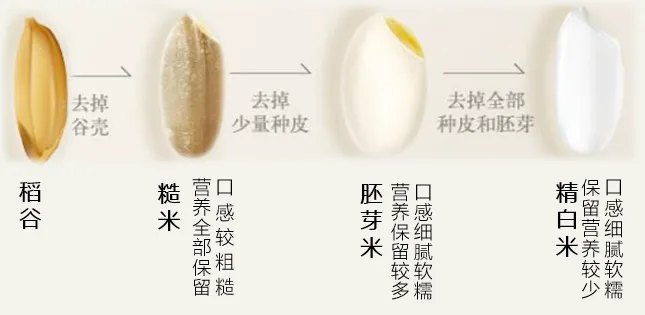 雖然精白米的口感提上來了,但是營養(yang) 也大打折扣。因為(wei) 皮層和胚芽是膳食纖維、維生素、礦物質等的主要聚集地。