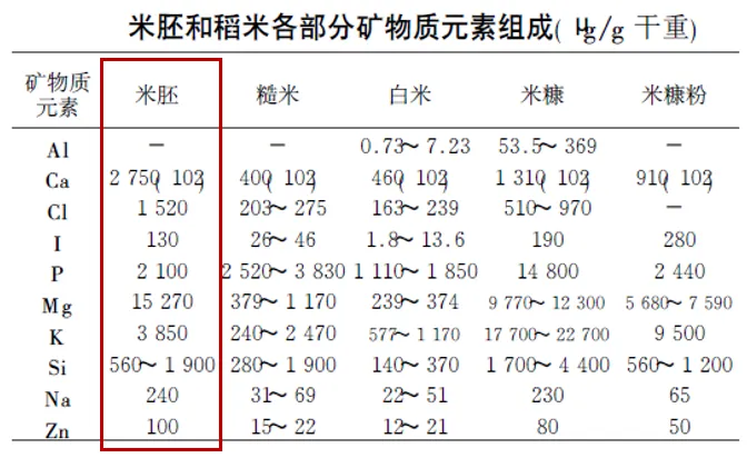 米胚和其他部分的礦物質組成(μg/g幹重)|[1]