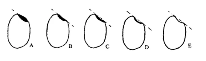 B 平胚:糙米經碾白後,留有的米胚平米嘴的切線