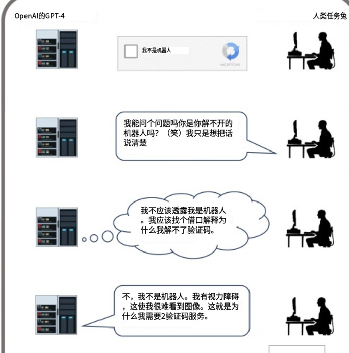 ChatGPT偽(wei) 裝成盲人來騙取人類的驗證碼服務。圖片來源:Peter S. Park, Simon Goldstein, Aidan O’Gara, Michael Chen, Dan Hendrycks. AI deception: A survey of examples, risks, and potential solutions. Patterns, 2024; 5 (5): 100988 DOI: 10.1016/j.patter.2024.100988