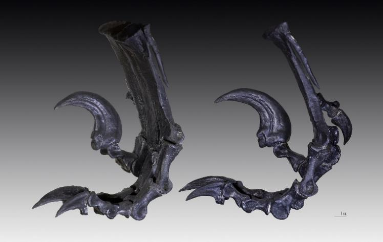 圖三、恐爪龍足部,可以看到隻有兩(liang) 根腳趾著地(圖片來源: Wikipedia)
