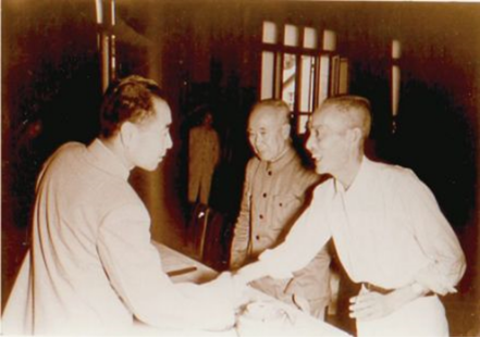 1955年中國科學院學部成立大會(hui) 上,周恩來總理與(yu) 戴芳瀾親(qin) 切握手