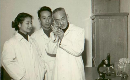 戴芳瀾(右1)在指導學生做實驗。(左1為(wei) 菌物學家、中國科學院院士鄭儒永)
