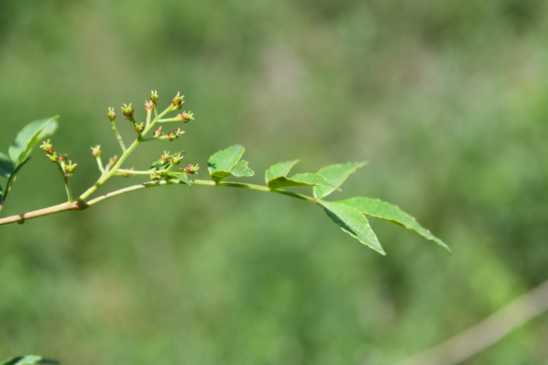雖然名為(wei) “花”椒,但花椒的花其實並不起眼,每到農(nong) 曆 3~4 月份,花椒樹帶刺的枝梢上便長出黃綠色聚傘(san) 狀的小花序。