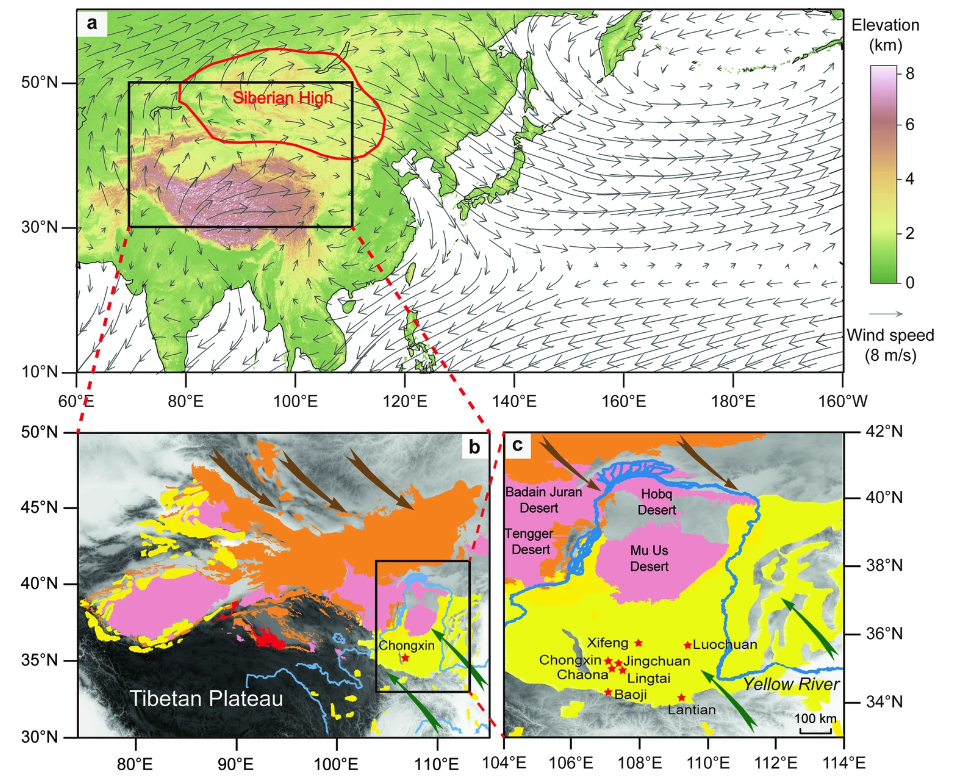 那麽(me) 如何知道過去百萬(wan) 年來亞(ya) 洲冬季風的變化呢?首先我們(men) 知道風力較強的時候能帶動較粗的顆粒,風力較弱的時候隻能吹的動一些較細顆粒,因此土壤的粗細程度就能很好的指示季風的強度。而亞(ya) 洲冬季風是從(cong) 西伯利亞(ya) 吹到我國,黃土高原就在亞(ya) 洲冬季風移動的必經之路上,因此根據黃土高原上這些土壤顆粒的粗細變化就可以判斷在過去亞(ya) 洲冬季風的強度變化。