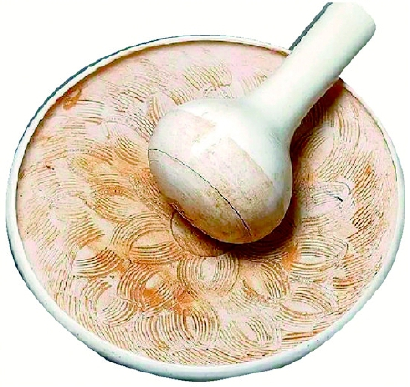 清代詩人朱昆田用壺沏泡友人贈送的岕茶後,不無譏誚地寫(xie) 道,“因笑唐宋人,紛紛貴團餅。研須倚石臼,打或藉銀梗”。詩人似在嘲笑飲用團餅茶須研磨、擊拂之煩瑣,其中的“石臼”便是唐宋人曾經使用的研磨器之一。另兩(liang) 件曾風行一時的研磨器則為(wei) 茶碾與(yu) 茶磨。