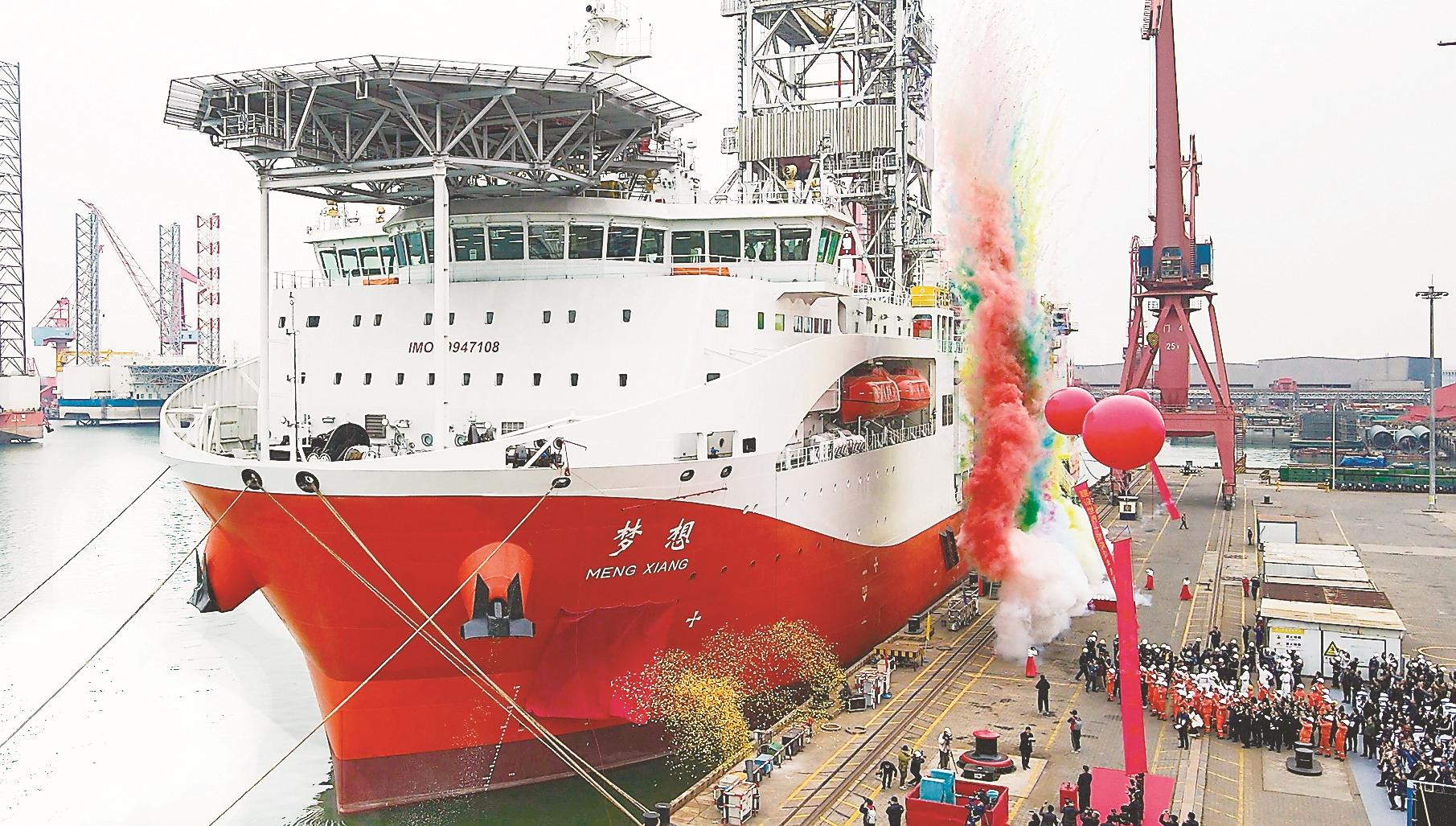 “夢想”號大洋鑽探船建成後將為(wei) 深海資源開發應用提供重要裝備保障,標誌著我國深海探測能力建設和裝備現代化建設邁出關(guan) 鍵一步,進一步提高了我國能源自主保障能力,有力支撐了我國實施大洋鑽探國際大科學計劃。