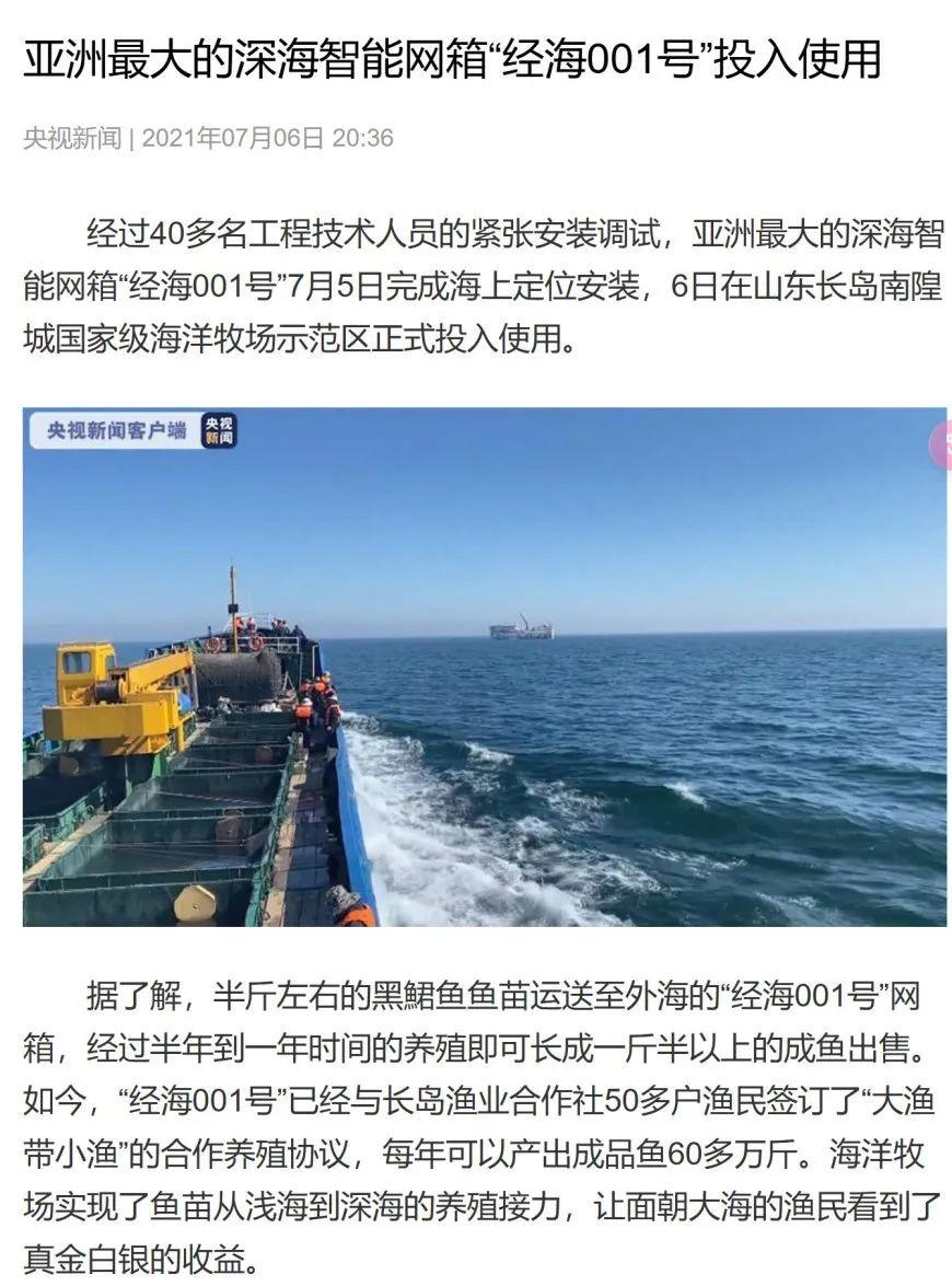 現在中國的水產(chan) 養(yang) 殖已經發了很大變化。現在的耕海牧漁,一個(ge) 深海漁場,能養(yang) 殖十萬(wan) 噸!比如,2021 年,亞(ya) 洲最大的深海智能網箱“經海 001 號”投入使用,它是講網箱放在深海區養(yang) 殖,環境好很多了。