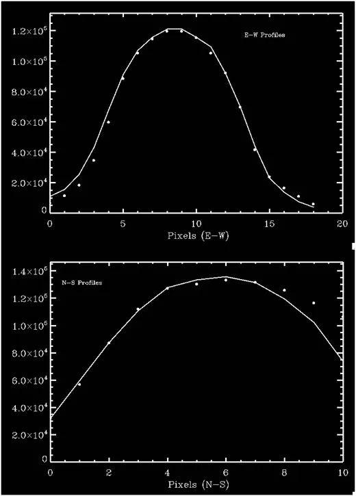於(yu) 是天文學家分析了這三顆星的輪廓。三顆星中,有一顆距離另外兩(liang) 顆稍遠,可以和鄰近的正常星對比它們(men) 的輪廓。結果發現,這三顆星的輪廓和正常的星幾乎完全一致,如果是放射性塵埃造成的亮點,不可能造成這樣的結果。如果是飛機、小行星這種移動較快的目標,在底片上的輪廓應該是一條直線。基本可以確定,這些亮點,就是望遠鏡正常成像產(chan) 生的。
