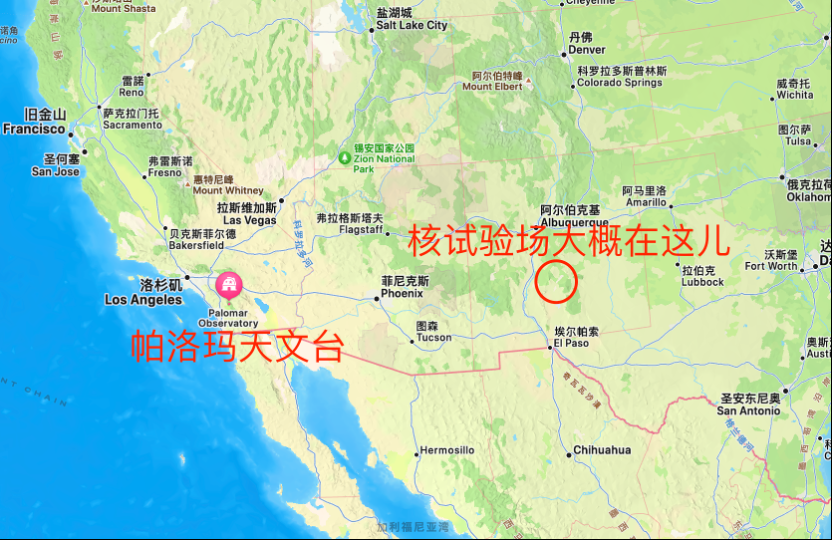帕洛瑪天文台距離美國新墨西哥州核試驗場不遠。