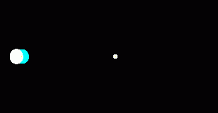 圖片正中存在一個(ge) 引力透鏡(透鏡本體(ti) 位於(yu) 圖片正中,未在圖片中標注),引力透鏡背後的點光源(青色圓)從(cong) 引力透鏡背後橫穿時,我們(men) 隻能看到被扭曲的像,也就是白色部分。圖片來源:wikipedia