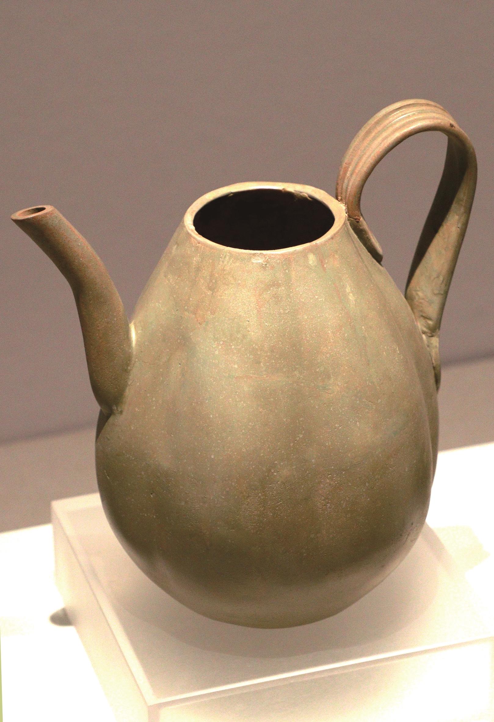 杭州三台山五代墓出土越窯秘色瓷瓜棱執壺。郭琪增 攝