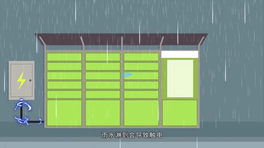 雷雨時接通電源的快遞櫃可能存在安全隱患,雨水淋到會(hui) 導致觸電。
