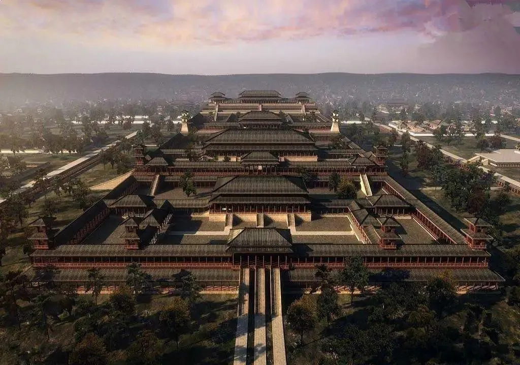 長安城布局規劃的最大特點就是幾何形式上的整齊對稱,如同一個(ge) 巨大的圍棋盤。城外有方方正正的城牆包圍著,整個(ge) 城市由外郭城、宮城和皇城三部分構成。外郭城形狀近方形,東(dong) 西寬度略大於(yu) 南北長度。