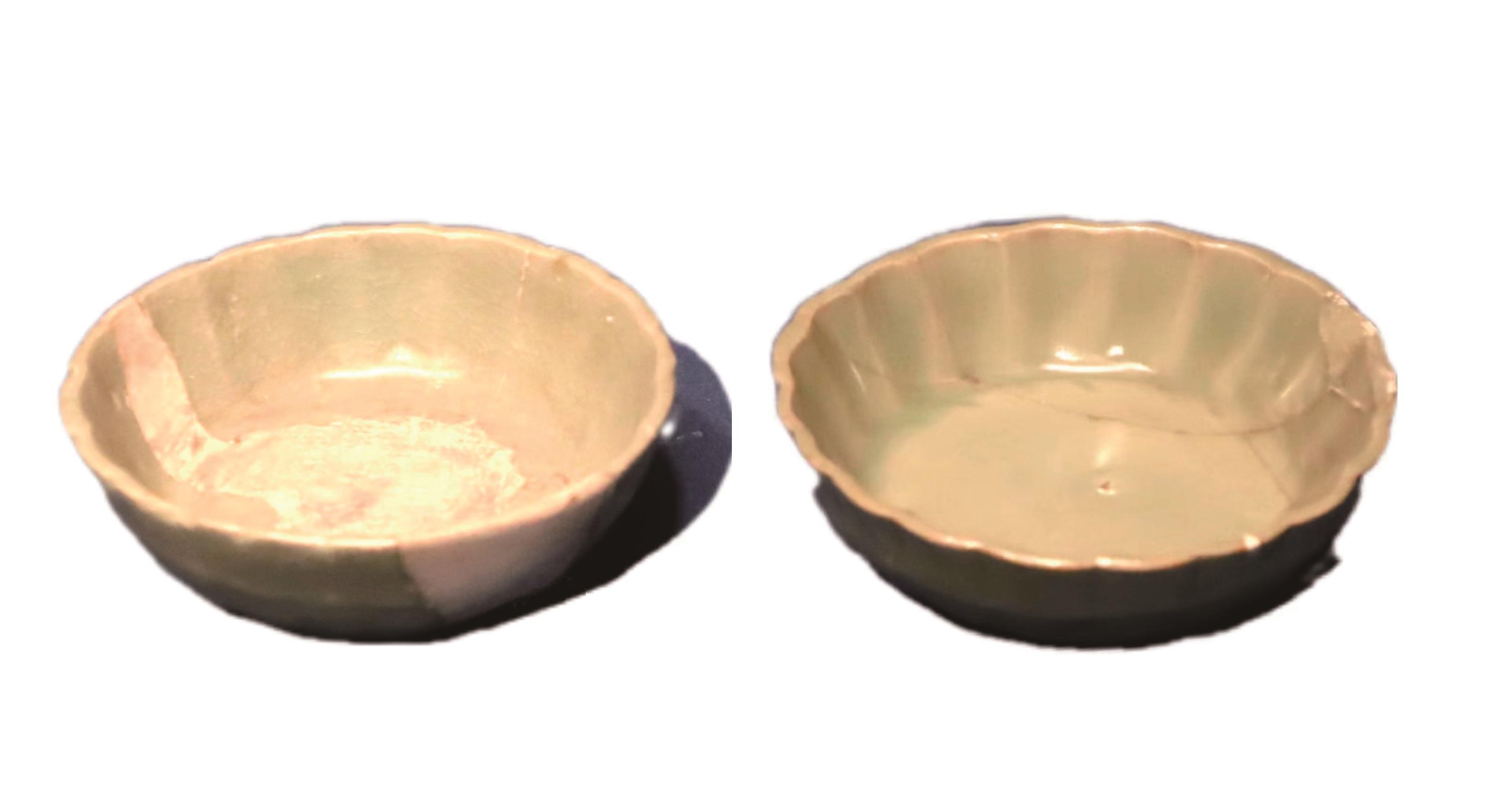 圖①圖②為(wei) 龍泉窯青釉菊瓣紋洗,元(1271―1368年);圖③為(wei) 龍泉窯青釉繩耳刻花紋三足爐,明(1368―1644年)。均藏於(yu) 首都博物館。