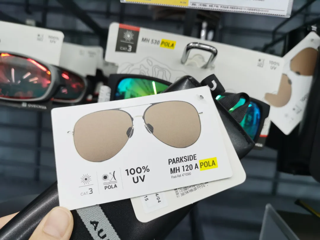 2.查看:查看墨鏡產(chan) 品的吊牌或者鏡片標識,看是否標明了偏光墨鏡或偏光鏡片。偏光墨鏡通常會(hui) 在產(chan) 品上標有“偏光”“Polarized”或簡寫(xie) 的“POLA”“P”等字樣。
