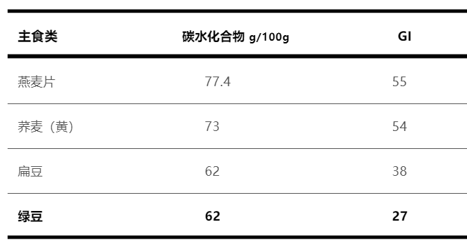 綠豆屬於(yu) 雜豆類,與(yu) 大米、小米、燕麥等類似,在飲食上主要充當主食。不過,和其他主食相比,綠豆的碳水化合物低,而且升血糖的速度也比較慢,血糖生成指數隻有 27(低於(yu) 55,屬於(yu) 低 GI 食物),與(yu) 其他穀物熬得湯相比,很適合糖友飲用。GI 的高低與(yu) 膳食纖維含量、澱粉類型等都有關(guan) 係。