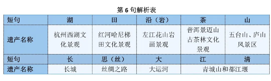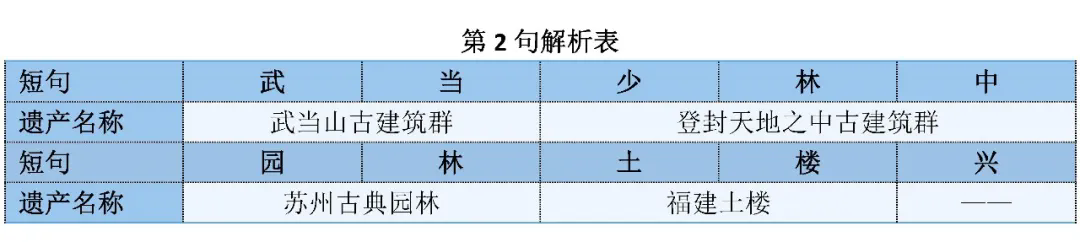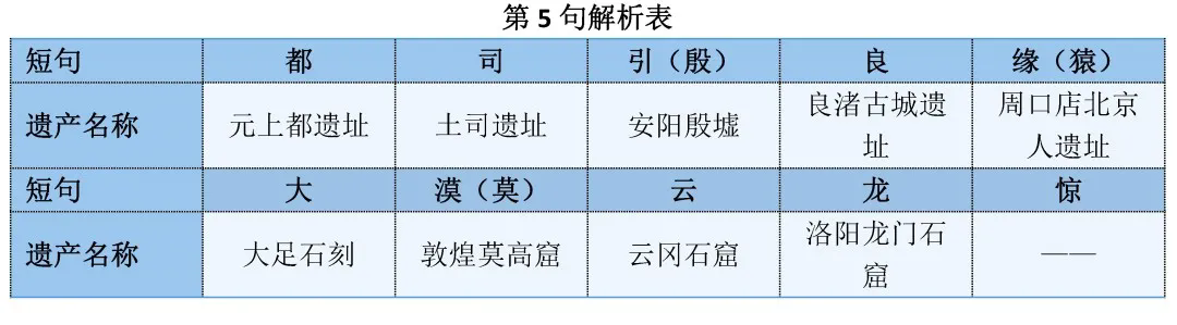 3)第5句對應石刻遺址類9項文化遺產(chan) ,解析表格如下: