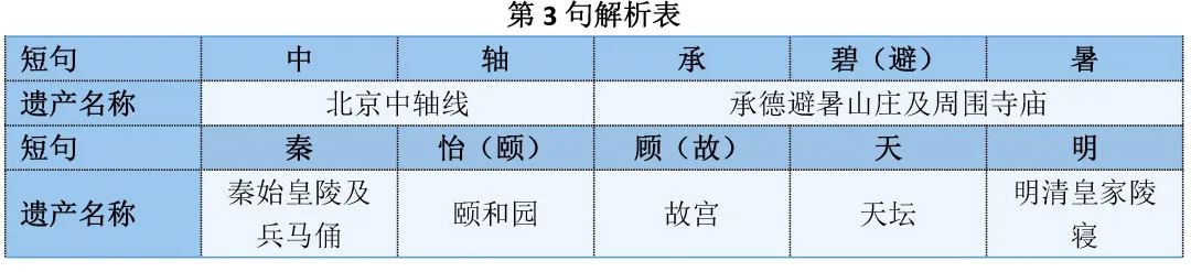 2)第3句+第4句對應帝王設施類10項文化遺產(chan) ,解析表格如下: