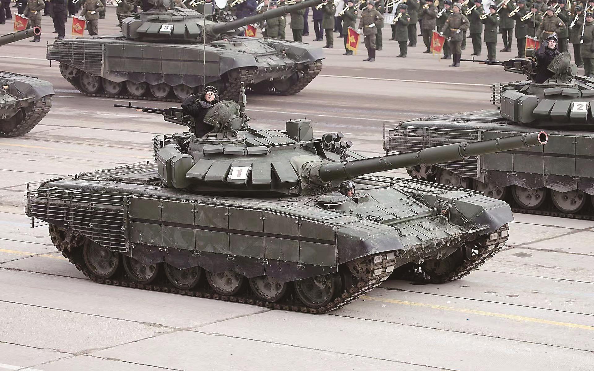 圖為(wei) T-72B3主戰坦克參加俄軍(jun) 閱兵式。