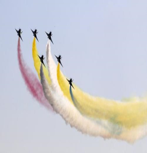 我們(men) 常見的彩色煙霧常常出現在日景煙花和飛機表演中,這些情況下所產(chan) 生彩煙的方式也有所不同。日景煙花所產(chan) 生的彩色煙霧常常用到以下兩(liang) 種方式。首先,部分產(chan) 品利用了煙霧劑燃燒生成有色煙霧的原理形成彩煙,如含有硫磺的煙霧劑在燃燒的過程中產(chan) 生二氧化硫。然而,這種方式的汙染較大,且產(chan) 生的煙霧色澤較為(wei) 普通單一,所以很多日景煙花采用了有色顏料升華的方式。在這種方式下,有機燃料被點燃後產(chan) 生的高溫使得固體(ti) 顏料升華成為(wei) 有色蒸汽,這些蒸汽在空氣中經過冷凝形成霧狀彩色小液滴,這就是我們(men) 看見的彩色煙霧。飛機表演中產(chan) 生彩煙的方式與(yu) 第二種相同,液體(ti) 拉煙劑將彩色顏料噴出後,顏料利用發動機噴出的高溫升華,在空氣中遇到水蒸氣後液化成為(wei) 霧狀彩煙。