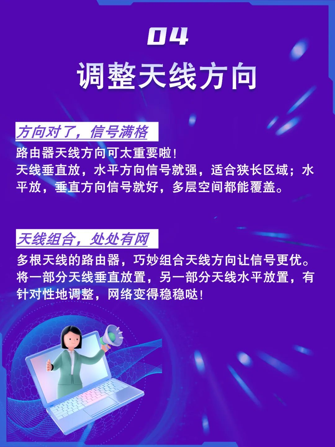 隨著互聯網的普及,路由器已經成為(wei) 每個(ge) 家庭必不可少的網絡設備。然而,在使用過程中,我們(men) 有時會(hui) 遇到路由器信號不佳的問題,導致網絡連接不穩定,影響日常生活和工作。從(cong) 路由器擺放的小技巧,到神秘的網絡設置優(you) 化,再到鮮為(wei) 人知的信號“增強神器”,戳圖get這份攻略!