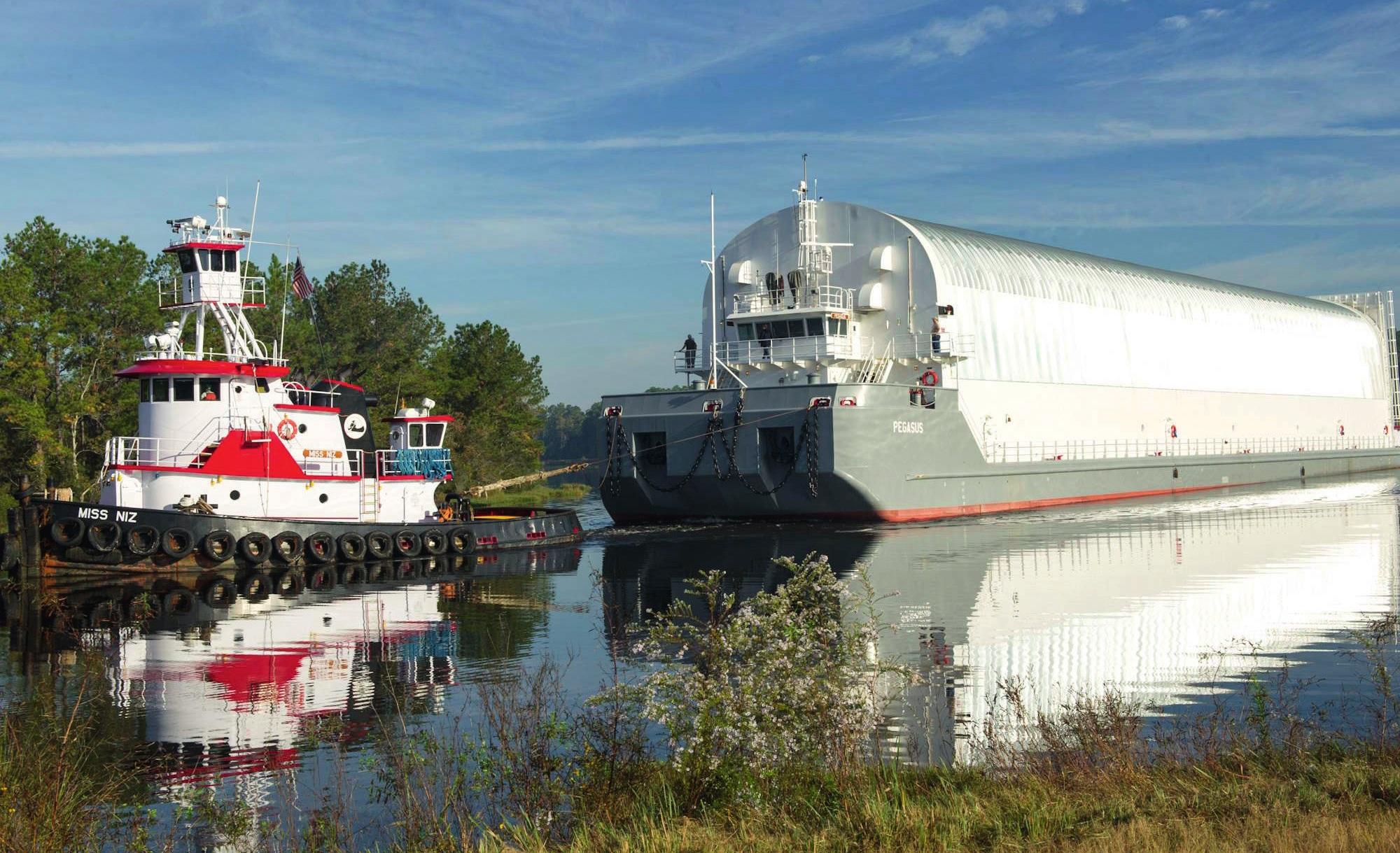早在“阿波羅計劃”時代,為(wei) 了將馬歇爾航天飛行中心製造的土星1號火箭部件運送至卡納維拉爾角基地進行發射,美國宇航局決(jue) 定使用駁船裝載大型火箭部件,先沿著田納西河、俄亥俄河和密西西比河航行,再穿越墨西哥灣,從(cong) 大西洋沿岸北上,最終抵達卡角港口。