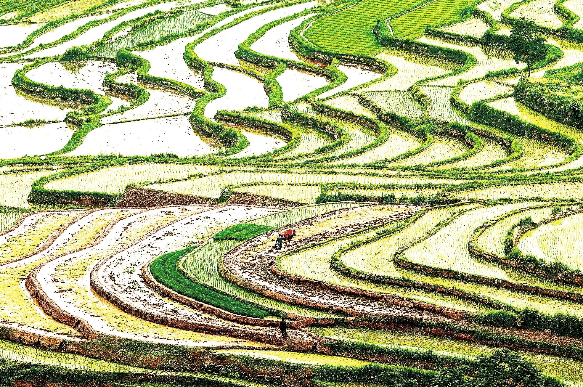 陝西省漢陰縣鳳堰梯田地處中國南北方交界處,由於(yu) 區域降雨量無法滿足田間用水,先民們(men) 就在山坡上修建堰塘調蓄灌溉用水。朱前平 攝
