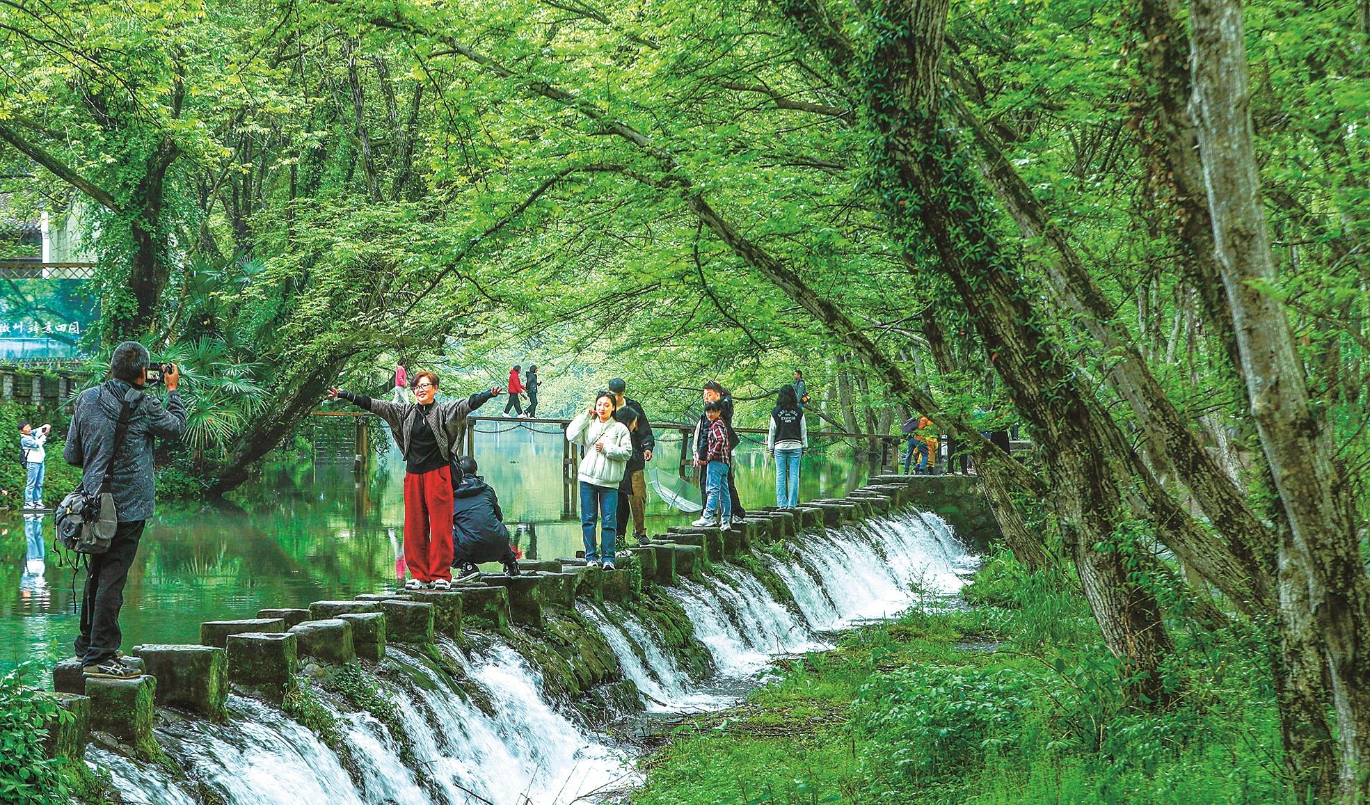 這是江西省婺源縣江灣鎮汪口村河道上的石堨。婺源全縣沿溪河修建的不同規模的石堨,遍布縣域水係。胡紅平 攝