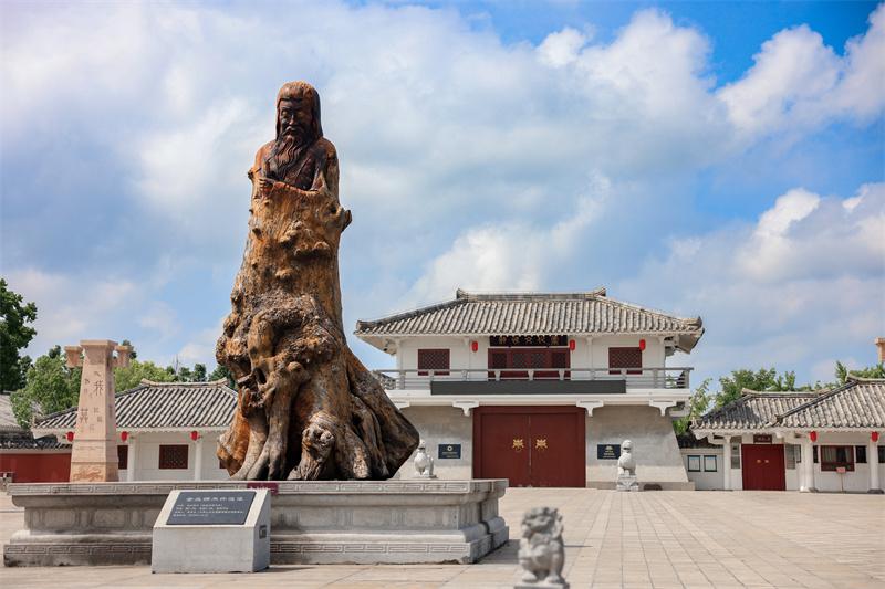 走進許慎文化園。一走進大門,隻見許慎的形象刻畫於(yu) 一塊高大完整的金絲(si) 楠木之上,矗立聳直,眼神深邃。許慎的貢獻家喻戶曉,就是他的偉(wei) 大著作——《說文解字》。