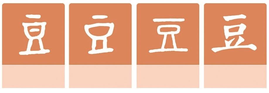 先說“豆”字。“豆”的甲骨文像是一種盛放食物的器皿,形狀有點像高腳盤。《說文解字》曰:“豆,古食肉器也。”《孟子·告子上》說:“一簞(dān)食,一豆羹,得之則生,弗得則死。”“簞”和“豆”本來都是盛放食物的器具,在這裏用作量詞。