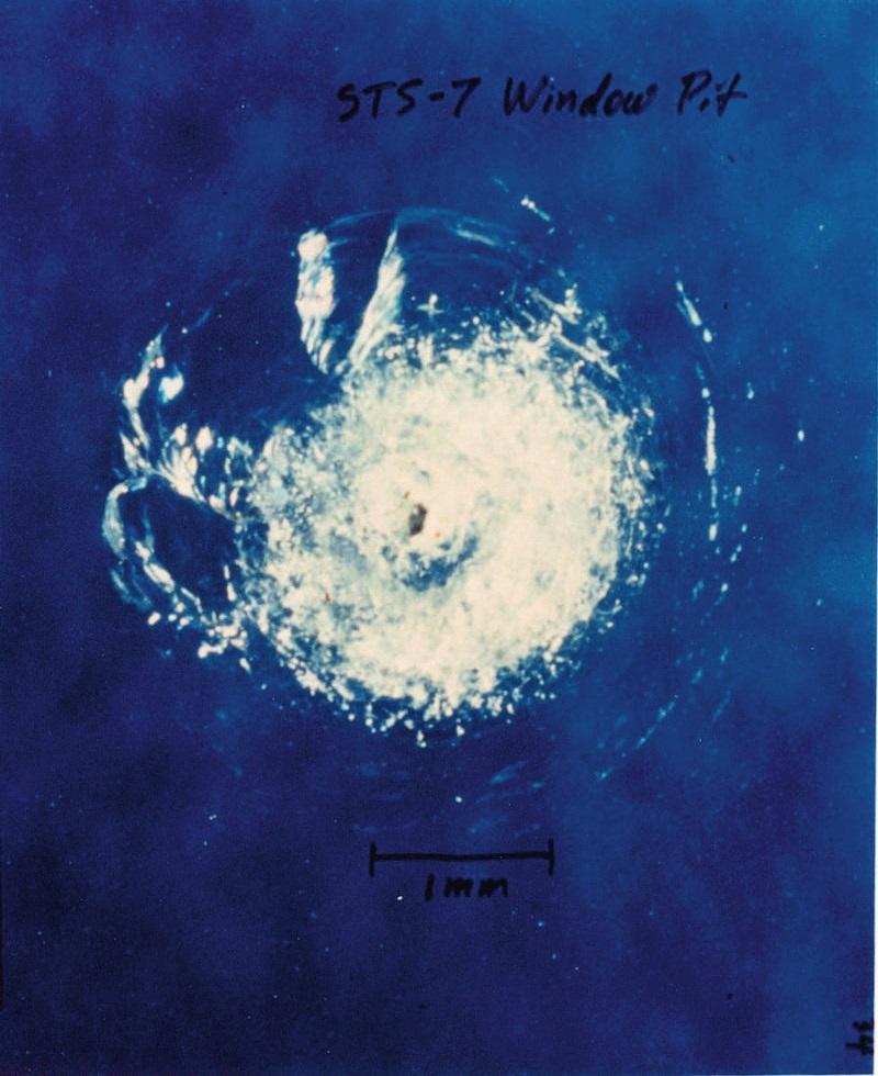 STS-7 任務中航天飛機窗戶被碎片擊中