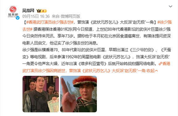 近日,“武俠(xia) 片巨星徐少強九月初在北京因食管癌離世”的消息衝(chong) 上熱搜。享年 73 歲的他,飾演過多個(ge) 令觀眾(zhong) 印象深刻的角色。那麽(me) 什麽(me) 是食管癌呢?