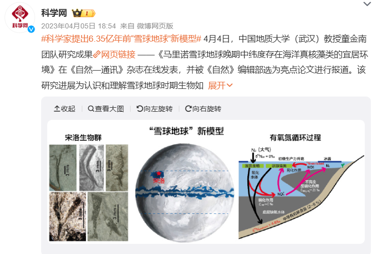 科學家提出6.35億(yi) 年前“雪球地球”新模型(圖片來源:微博截圖)