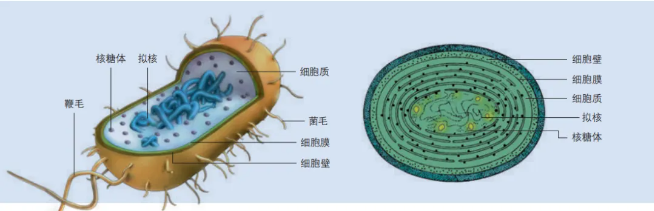 大腸杆菌和藍細菌(屬於(yu) 原核生物)的細胞結構示意圖(圖片來源:人教版高中生物教材-必修1)