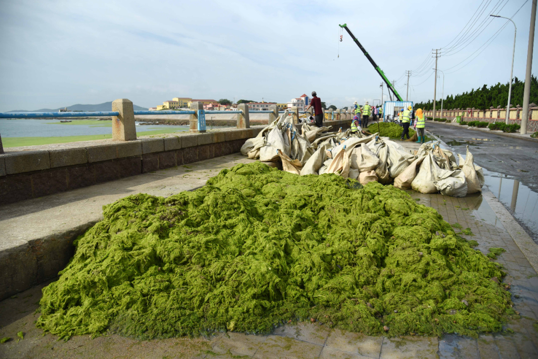 從(cong) 海裏撈上岸的滸苔(圖片來源:新華社)