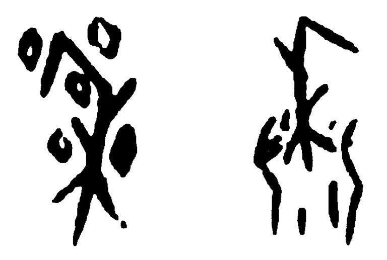 (左圖:甲骨文“粟”字 右圖:甲骨文“黍”字)