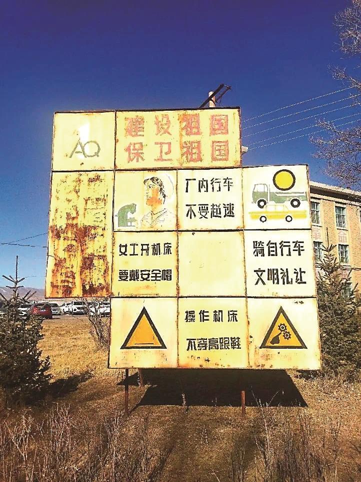 左圖為(wei) 一分廠工作提示標語,右圖為(wei) 一分廠內(nei) 的雕塑。(作者供圖)