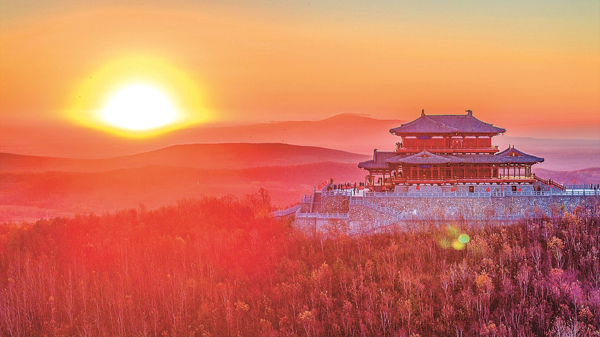 10月12日,無人機航拍撫遠市東(dong) 極閣日出。撫遠氣候寒冷濕潤,土壤肥沃,光照充足,為(wei) 蔓越莓的生長提供了得天獨厚的條件。