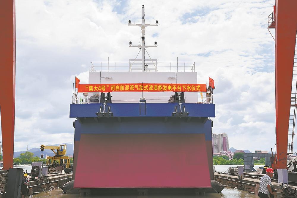 2024年9月。集美大學海洋裝備與(yu) 機械工程學院楊紹輝教授團隊的科研項目——“集大4號”可自航混流氣動式波浪能發電平台成功下水(圖片來源:新華社)