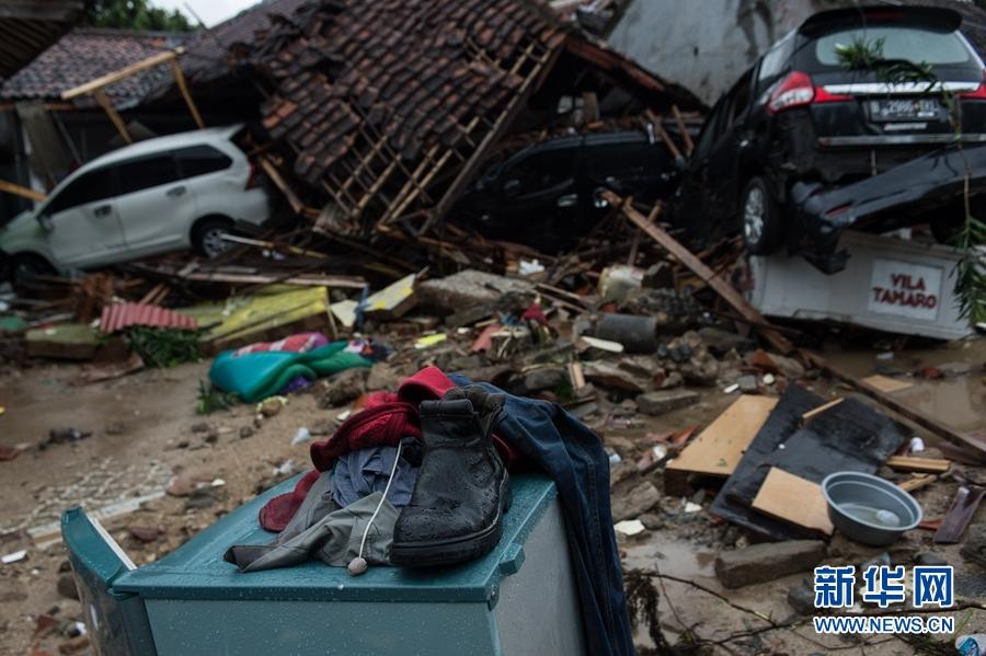 2018年12月23日,在印度尼西亞(ya) 萬(wan) 丹省板底蘭(lan) ,海嘯過後一片狼藉(圖片來源:新華社)