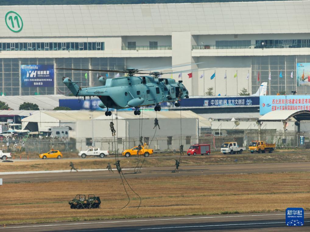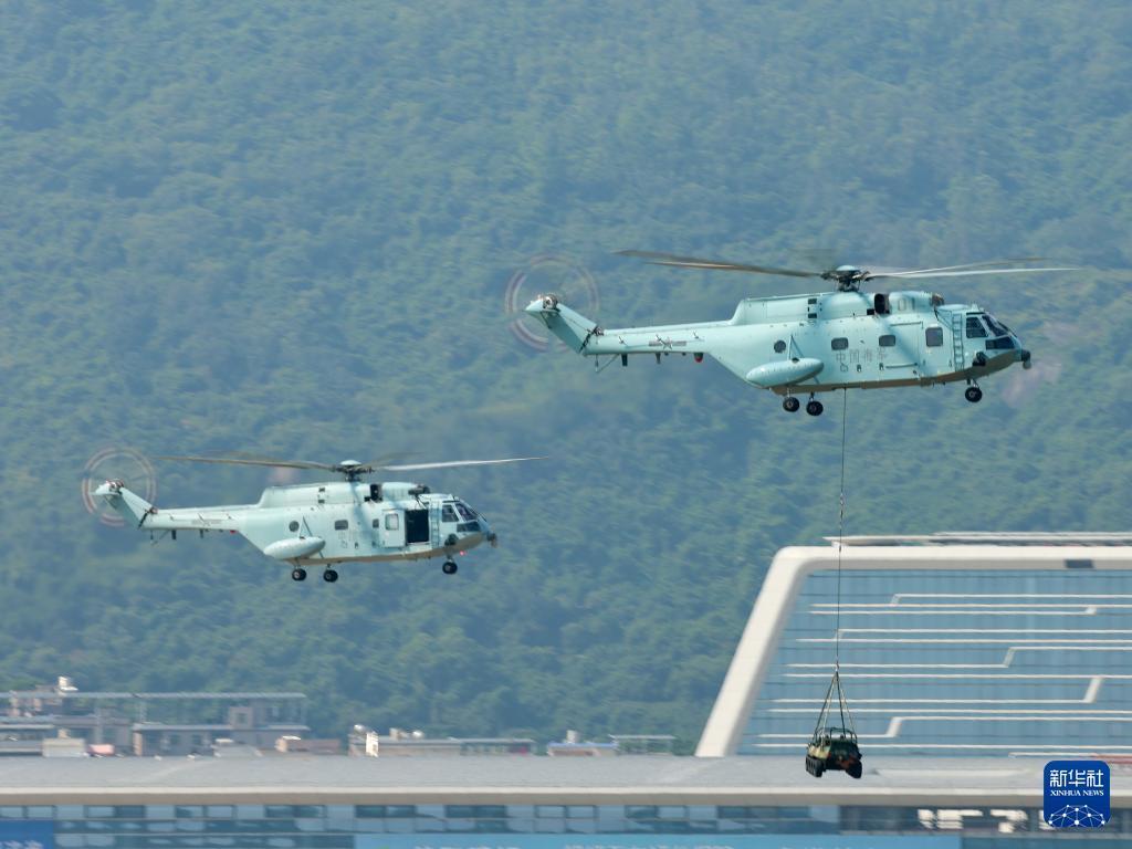 除艦載戰鬥機飛行表演外,直-20J艦載直升機、直-8C運輸直升機搭載海軍(jun) 陸戰隊隊員和全地形突擊車進行了空中突擊作戰演示,有效檢驗部隊指揮編組、火力打擊、作戰協同等實戰能力。海軍(jun) 陸戰隊某部李中天介紹,與(yu) 傳(chuan) 統的直-20係列相比,直-20J的起落架縱向輪距更短,能夠更好適配不同型號的軍(jun) 艦,具備在複雜、惡劣的條件下起降的能力,能較好地適應各種海況。