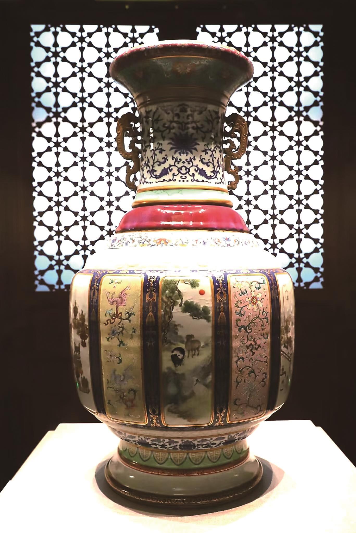 左圖為(wei) 清乾隆“各種釉彩大瓶”,高86.4厘米,口徑27.4厘米,足徑33厘米。