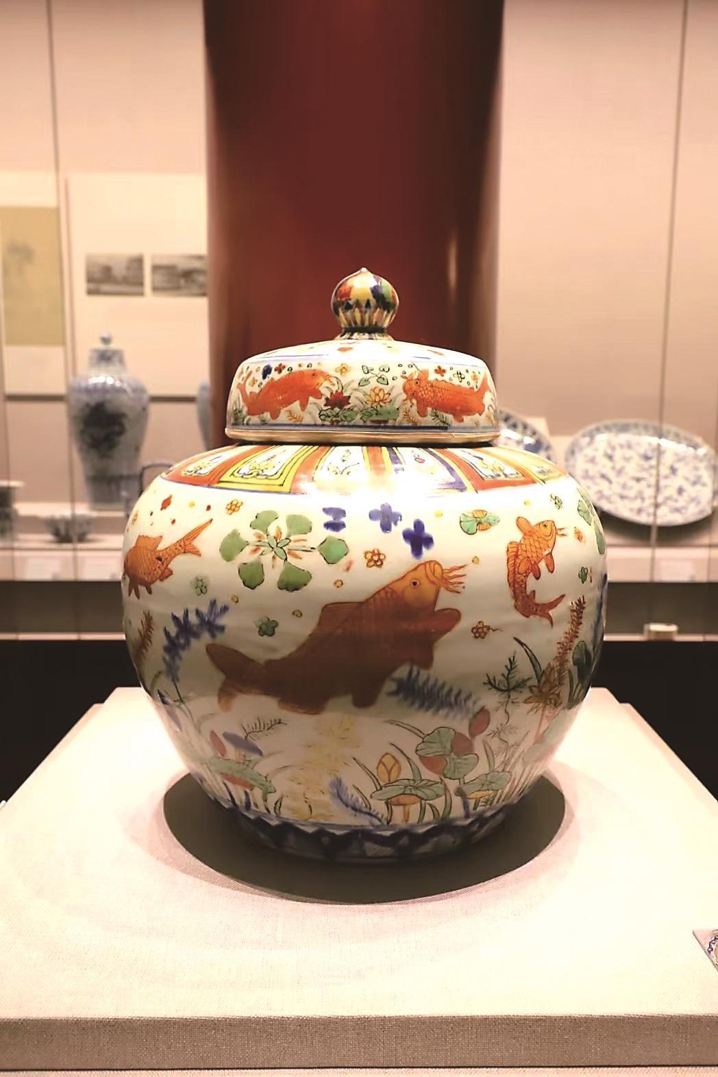 右圖為(wei) 明嘉靖“五彩魚藻紋蓋罐”。