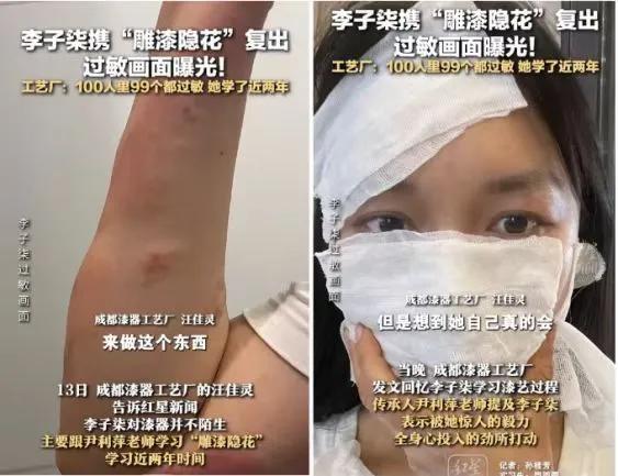 第三,割漆困難,漆樹一般都生長在高山上,森林中,進山割漆困難危險。加之,生漆很可能造成人體(ti) 過敏,割漆極其不便。在李子柒的視頻中,我們(men) 看到她在第一次接觸生漆時,就有嚴(yan) 重過敏。
