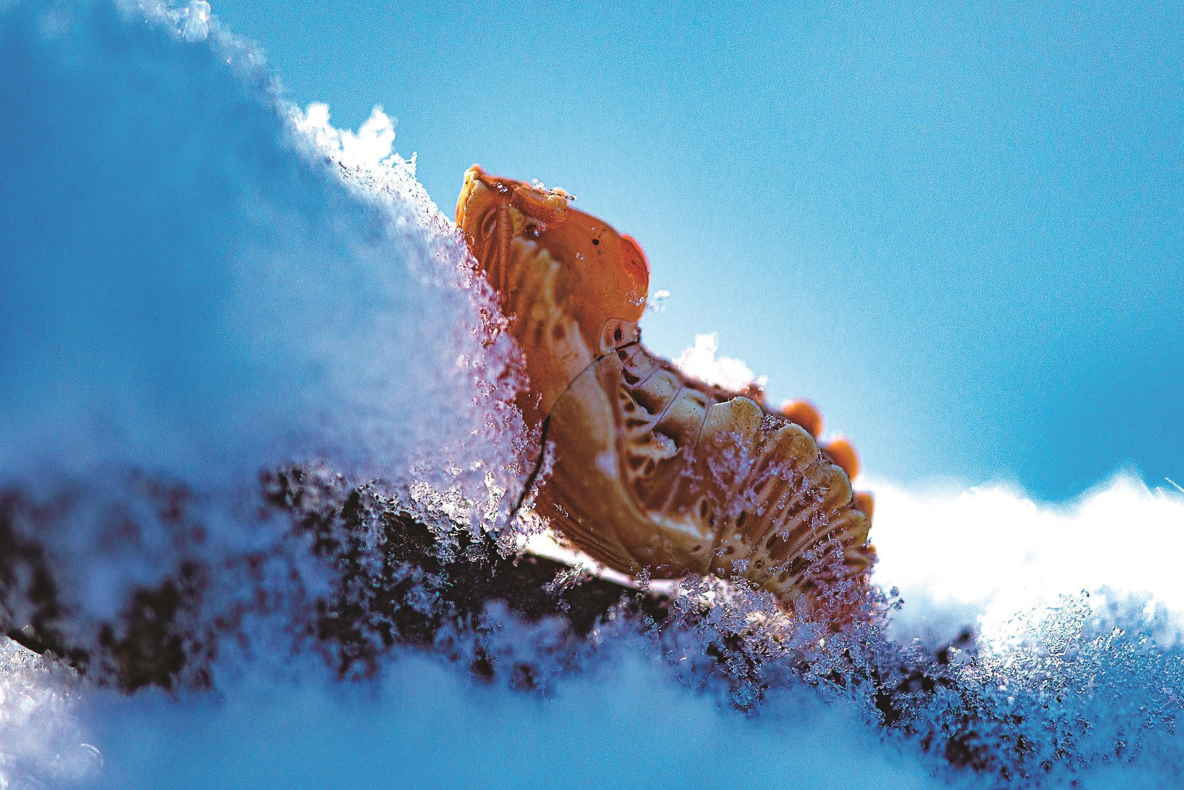 以卵形態越冬的蝴蝶,因其外表包裹著一層厚厚的蠟質殼,就如同穿上保暖的狐裘錦衾,不但卵內(nei) 的胚胎凍不著,還能借助冰霜雪雨的浸潤,讓硬硬的卵殼變得脆薄易破,在春風喚醒殼裏的幼蟲時,它才能破繭成蝶。
