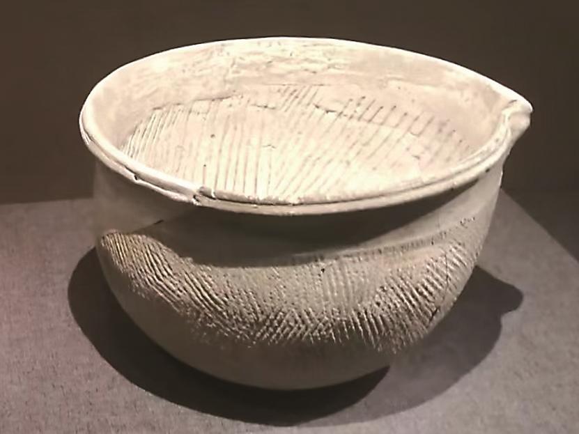 右圖為(wei) 刻槽陶盆(約公元前1750年-公元前1530年)。(均為(wei) 中國考古博物館館藏)